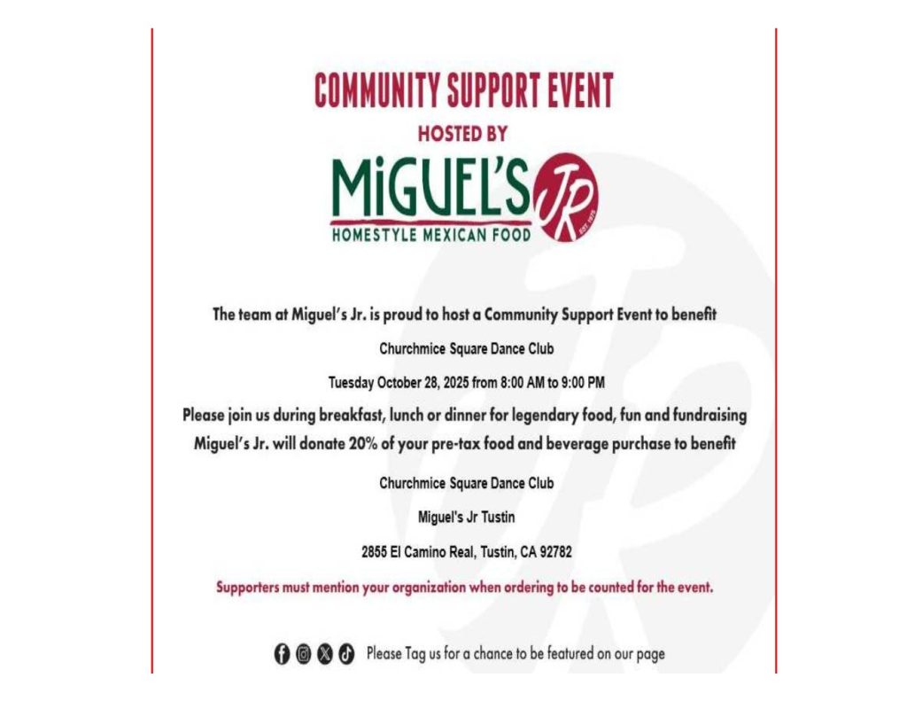 We host monthly plus-level square dances in Orange County, Californiaon the third Saturday of each month!