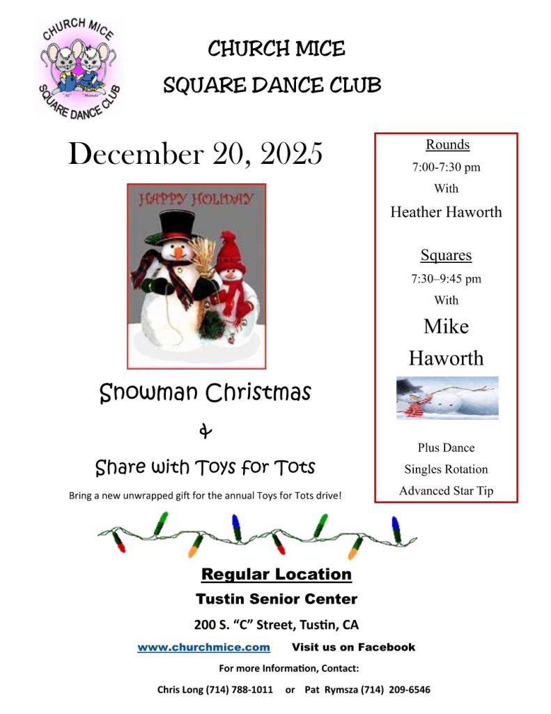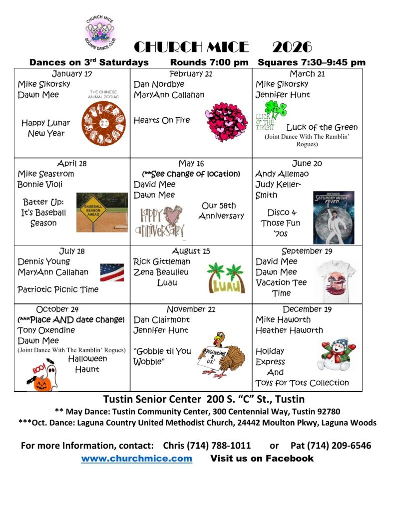 Occasionally dances will be held in a different location. Always confirm the location of a dance on the calendar.